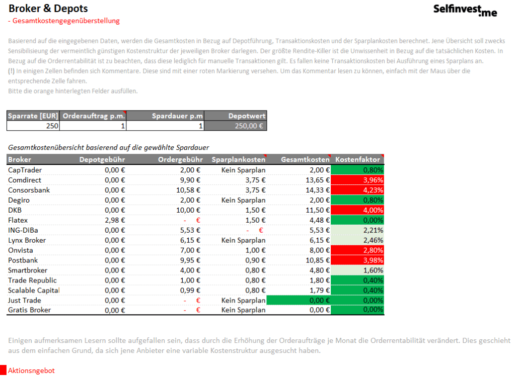 Um deine Potenziale besser erkennen zu können gebe ich dir hier zwei Tools an die Hand. Den Kostenspiegel, welcher dir Aufzeigt wo Kosten eingespart werden können, und den Broker & Depotvergleich bei welchem du herausfindest, welcher Broker / welches Depot am besten zu dir passt.
